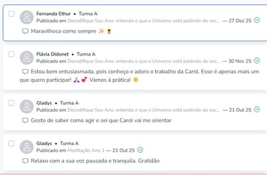 Formada em Numerologia e especialista em campo inconsciente, já ajudou centenas de pessoas a compreenderem seus padrões emocionais e transformarem suas vidas através do poder dos números. Carol percebeu que muitas pessoas estavam presas nos mesmos ciclos ano após ano. Foi por isso que ela criou o Decodifique Seu Ano — um mapa para liberar bloqueios emocionais e abrir caminhos antes da virada energética.